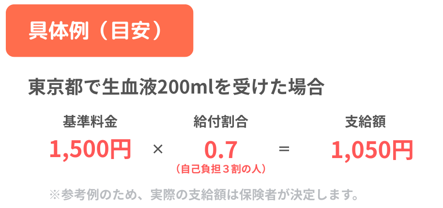 支給額は、「生血液の基準料金 × 給付割合」で計算されます。