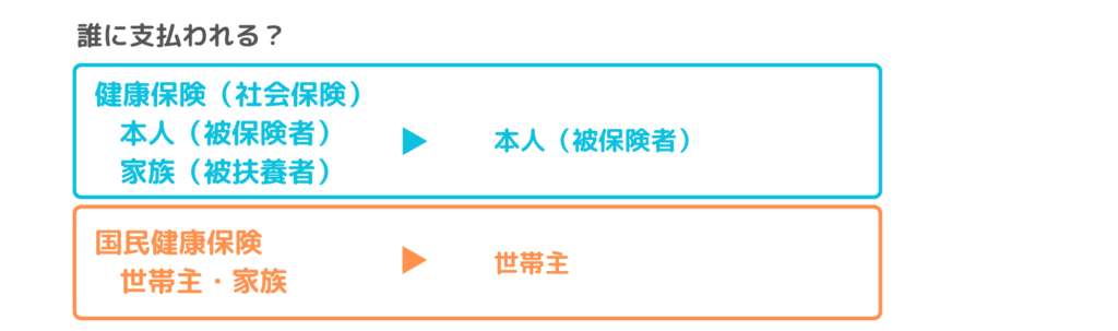 の場合には、「健康保険➡被保険者」「国民健康保険➡世帯主」の銀行口座に支払いが行われます。